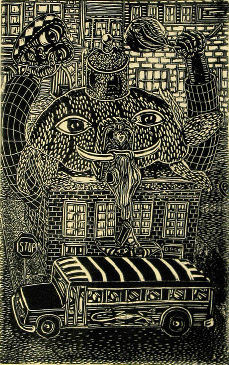 The print “Cerberus” reveals the artist’s interest in Greek and Roman mythology.