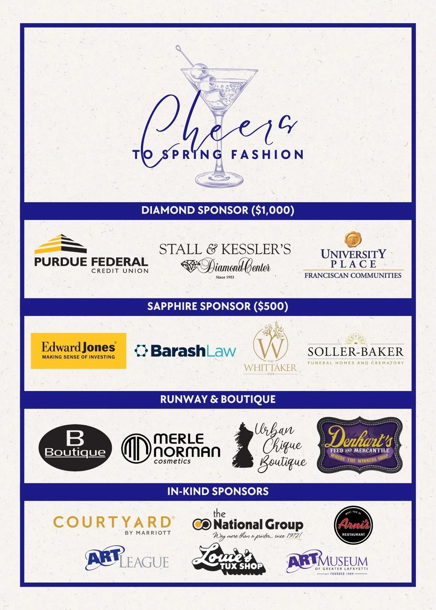 Our vendors on the runway include Merle Norman, B Boutique, Urban Chique Boutique, and Denhart’s Mercantile.